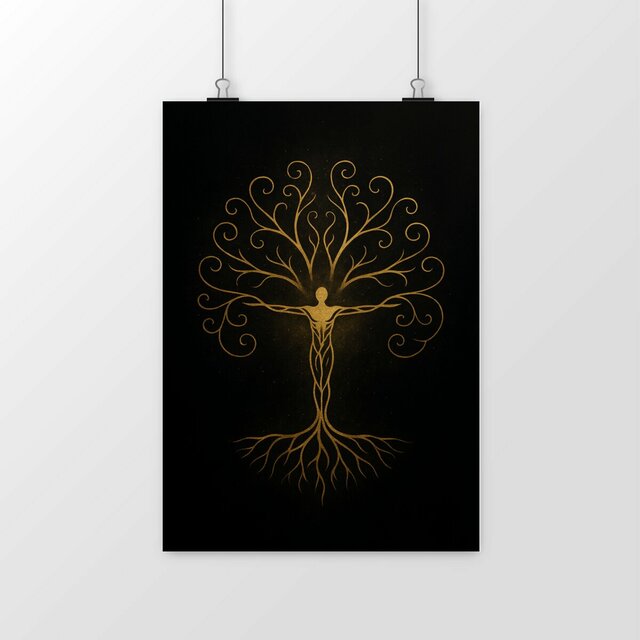 Poster vertical Arbre Vie avec Silhouette Humaine